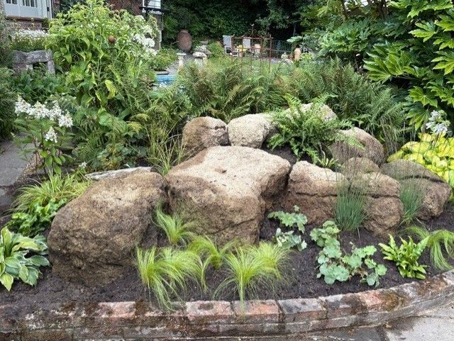 Had a relaxing week making a small fernery ‘tufa’ rockery for a private client. Some 'Before' and 'After' pics 🪨🌱